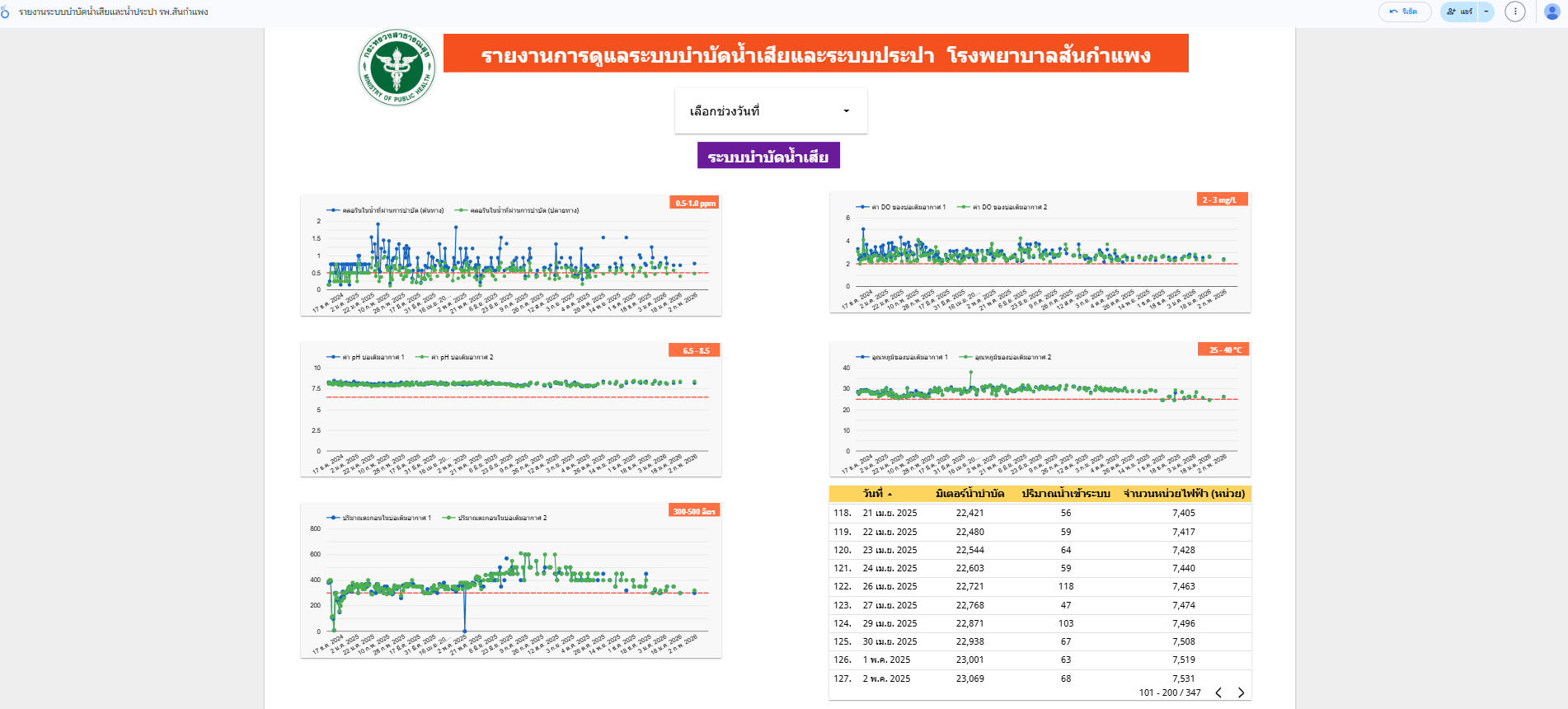 4.3.12. มีการตรวจสอบการทำงานของระบบบำบัดน้ำเสีย พร้อมบันทึกผลการตรวจสอบประจำวัน